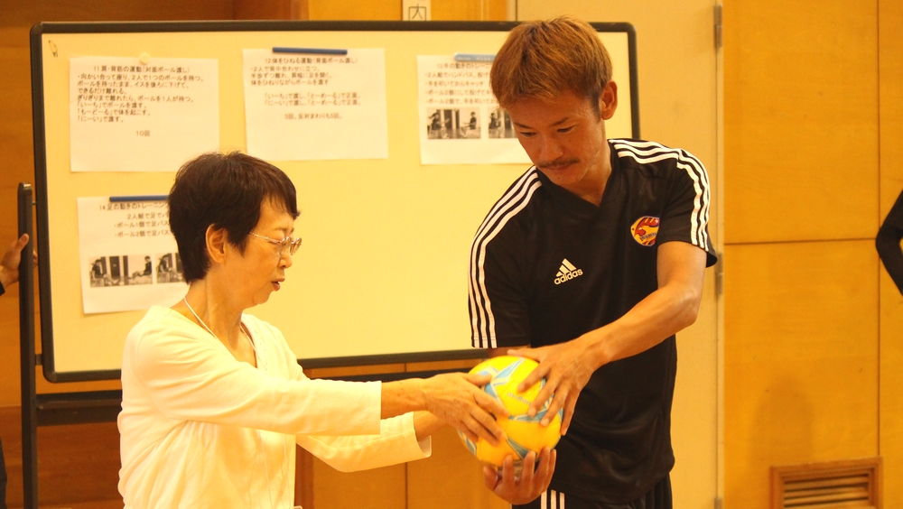 9月18日(水)、国見ヶ丘地域包括支援センター主催の「ベガルタ仙台元気づくり教室」 第1回目が実施されました。クラブ創立25周年記念事業【KIZUNA未来プロジェクト】の一環としてメタボリックシンドローム対策への取り組みへの側面もあり、これまでクラブが実施してきた単発の体操教室とは異なり、全8回シリーズで毎週水曜日に体操を行います。