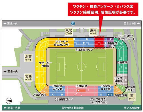 ※基本的な感染対策はスタジアム共通(来場時の検温・消毒、マスク、応援制限、直行直帰推奨など)であり、観戦ルールもその他席種と同様です。観戦ルールについては、チケットご購入前に必ずベガルタ仙台オフィシャルウェブサイトにてご確認ください。