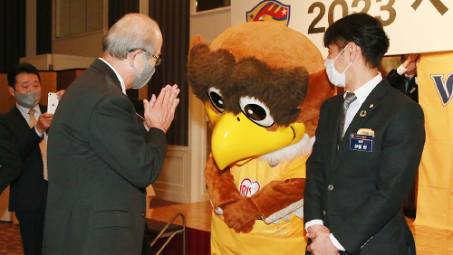 本日は、2023シーズンの新生ベガルタ仙台結団式にお集まりいただきまして、誠にありがとうございます。今回、ホームタウン協議会を代表して郡会長、ユニフォームスポンサーを代表しましてアイリスオーヤマの大山会長、木下グループの田中専務取締役、SVCホールディングスの小林社長、そのほか多くのスポンサーの方々にもご出席いただきました。本当に、ありがとうございます。