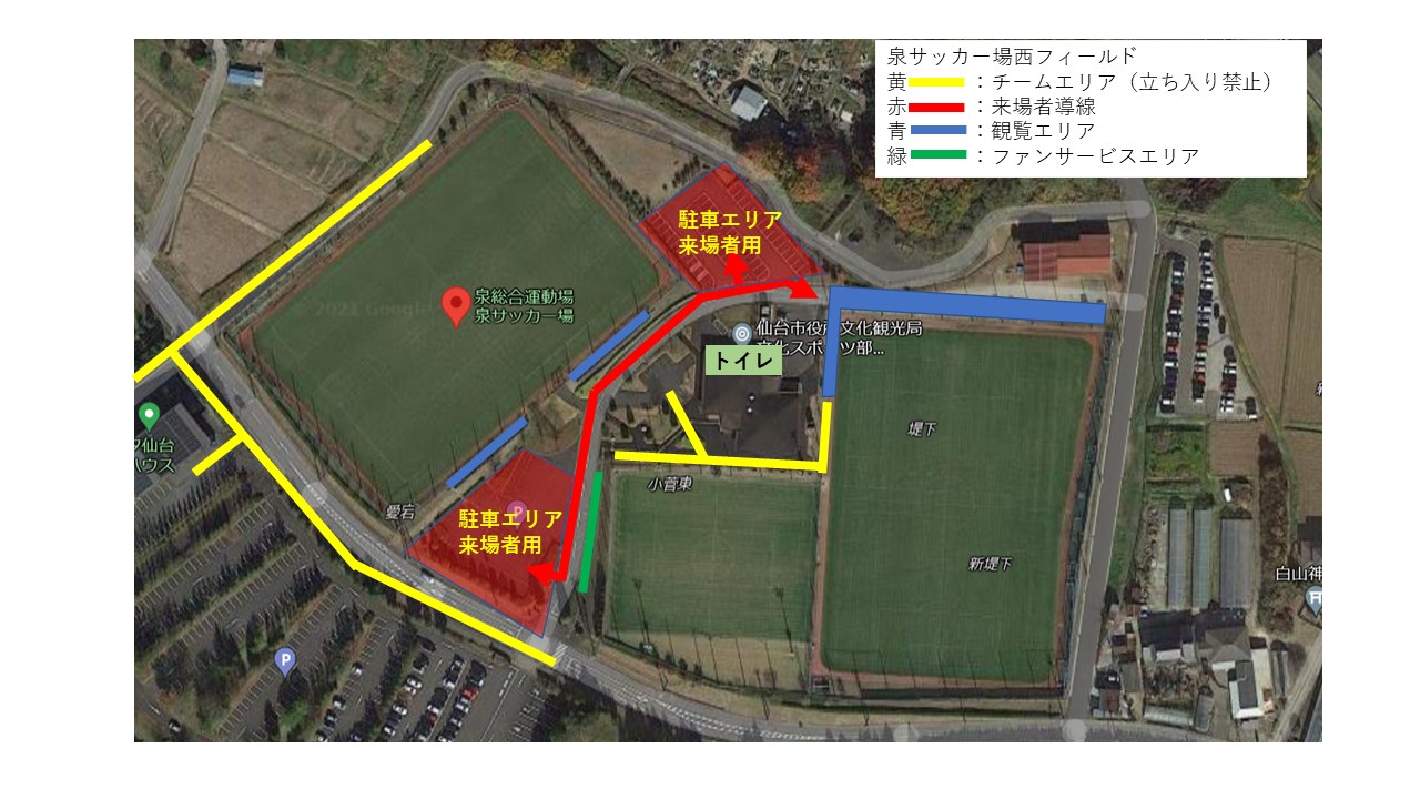 泉サッカー場内の指定エリアのみ、画像を参照ください。