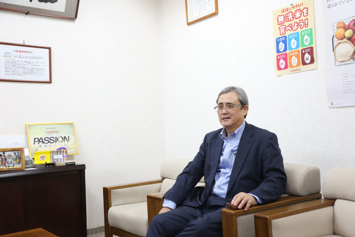 我々の商品である「お米」は宮城の象徴でもあります。宮城県の生産量は全国で5位(令和6年)で、昔は「東の横綱ササニシキ、西の横綱コシヒカリ」と呼ばれた時代もありました。ベガルタ仙台も今や、宮城の象徴です。その2つが協力して、ずっと何か一緒にやっていければいいですね。今スタジアムで出店している「みやぎお米ぎゃらりぃ」も、たとえ社長の私が退任したとしてもずっと続けてくれと、伝えたいと思っています。