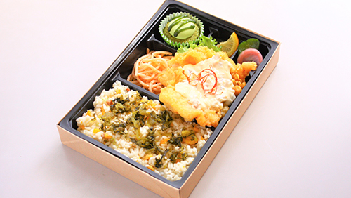 【商品名】相良竜之介選手コラボ弁当「高菜チャーハンといぶりがっこタルタルのチキン南蛮弁当」