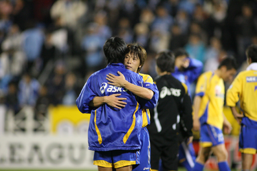 新米キャプテン。2008年は開幕から真新しいキャプテンマークを身につけて、チームを導こうと奮闘した。肩に力も入っていただろう。そんな時も常に周りには彼を支えるたくさんの手や目があった。入場直前、ロッカールームから出てくる梁はキャプテンマークをまだ身につけていない。その腕章は出口で待っていた当時の強化部長、丹治祥庸さん(現モンテディオ山形ゼネラルマネージャー)に手渡して巻いてもらうのが恒例だった。キャプテンも強化部長も「1年生」。どんな時も自らを信じてくれる丹治さんに「お守り」のようにつけてもらうことが、二人だけのお決まりの儀式だった。「点を取れ」「けがをするな」「絶対に勝つぞ」巻き終わった最後に、両手で包んで念を込めた。それに応えようと梁は走り続けた。