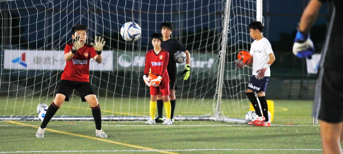 ゴールキーパーコース #さらにうまくなる #GK専門のスクール ゴールキーパー専門の60分コース。JFA公認のGKライセンスを保有しているGKコーチが直接指導します。基礎技術の習得、実践形式の中で使える技術の習得を目指します。泉パークタウン校で月曜のみ開催しています。 対象校 泉パークタウン校 月会費 6,600円(税込) 対象学年 [ 泉パークタウン校 ]4~6年、中1~3年体験・入会はこちら 会場 マイナビベガルタ仙台泉パークタウンサッカー場 住所 仙台市泉区明通1-1-2 施設 屋外人工芝グラウンド アクセス 自家用車、自転車バス:「宮城県図書館前」より徒歩約1分 駐車場 無料 活動内容一例 オープニング(2-3分) あいさつ、出席確認、約束ごとの確認 ウォーミングアップ(10分) 【ゴールキーパーの動きづくり】動作習得、コーディネーショントレーニング、ボール操作、鬼ごっこなど トレーニング1(10分) 【ゴールキーパーの基本技術】基本姿勢、キャッチング、ステッピング、ローリングダウン、ダイビング、フロントダイビング、スローイング、キックなどの技術、スキルアップに必要な知識と解釈・理解を深めるトレーニングなど トレーニング2(15分) 【ゴールキーパーの発展】シュートストップ、ブレイクアウェイなど、より試合に近い状況でのテクニックを発揮するためのトレーニング ゲーム(20分) 【試合形式トレーニング】試合をしない場合はウォーミングアップ、トレーニング1、トレーニング2を充実させる クロージング(2-3分) 片付け、クールダウン、フィードバック、連絡、あいさつ 体験・入会までの流れ