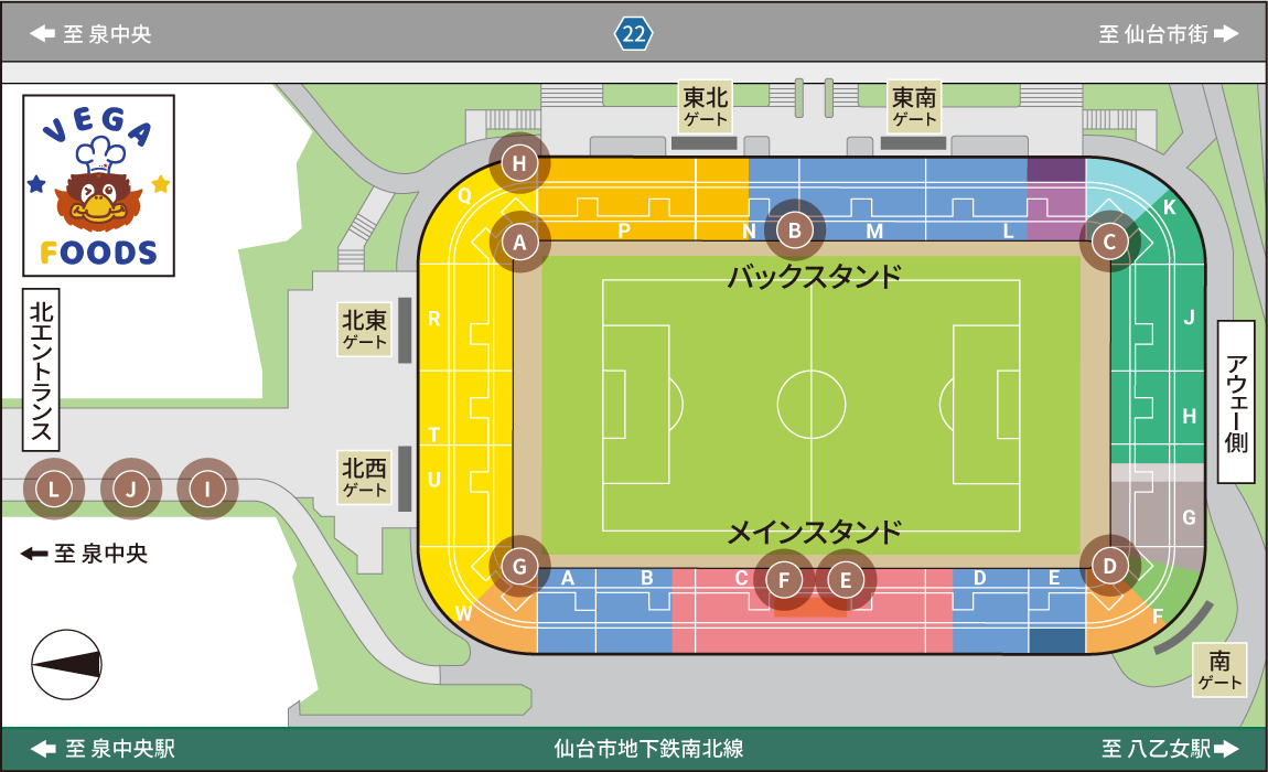 マップ上にマークのある各飲食売店の内容がご確認いただけます。(試合によって変更になる場合がございます)