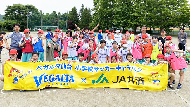 小学校の授業内におけるサッカー教室の実施宮城県内の小学校を訪問し、プロのコーチが学校の授業の中でサッカー教室を実施し、身体育成とともにコミュニケーション能力の開発を行います。