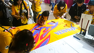 9月1日(土)清水エスパルス戦において、市民後援会ブースに寄せ書き用のベガルタフラッグを用意し、CSKAモスクワに移籍の決まった西村選手へのメッセージを受け付けました。思いのこもったフラッグは当日の壮行セレモニーで西村選手へお渡ししました。