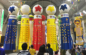 写真は昨年の仙台七夕まつりでの「ベガルタ七夕飾り」です。