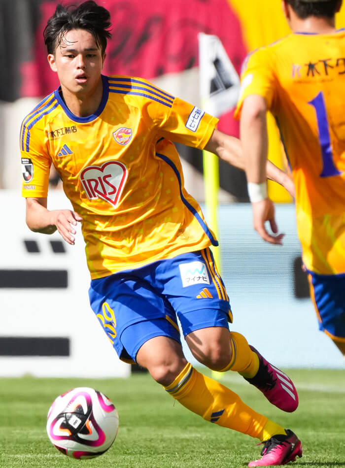 端からは冷静に試合の状況に対応して見えるが、本人は「まだまだ」と浮かれることなく謙虚に自分を磨く。プロ初出場を先発で経験した明治安田J2第1節・大分戦は「とても緊張した」とのこと。だが、その大分戦では立ち上がりの時間帯に両チーム最初のシュートを打ったように、自身の思いきったプレーで緊張を解くことができる。